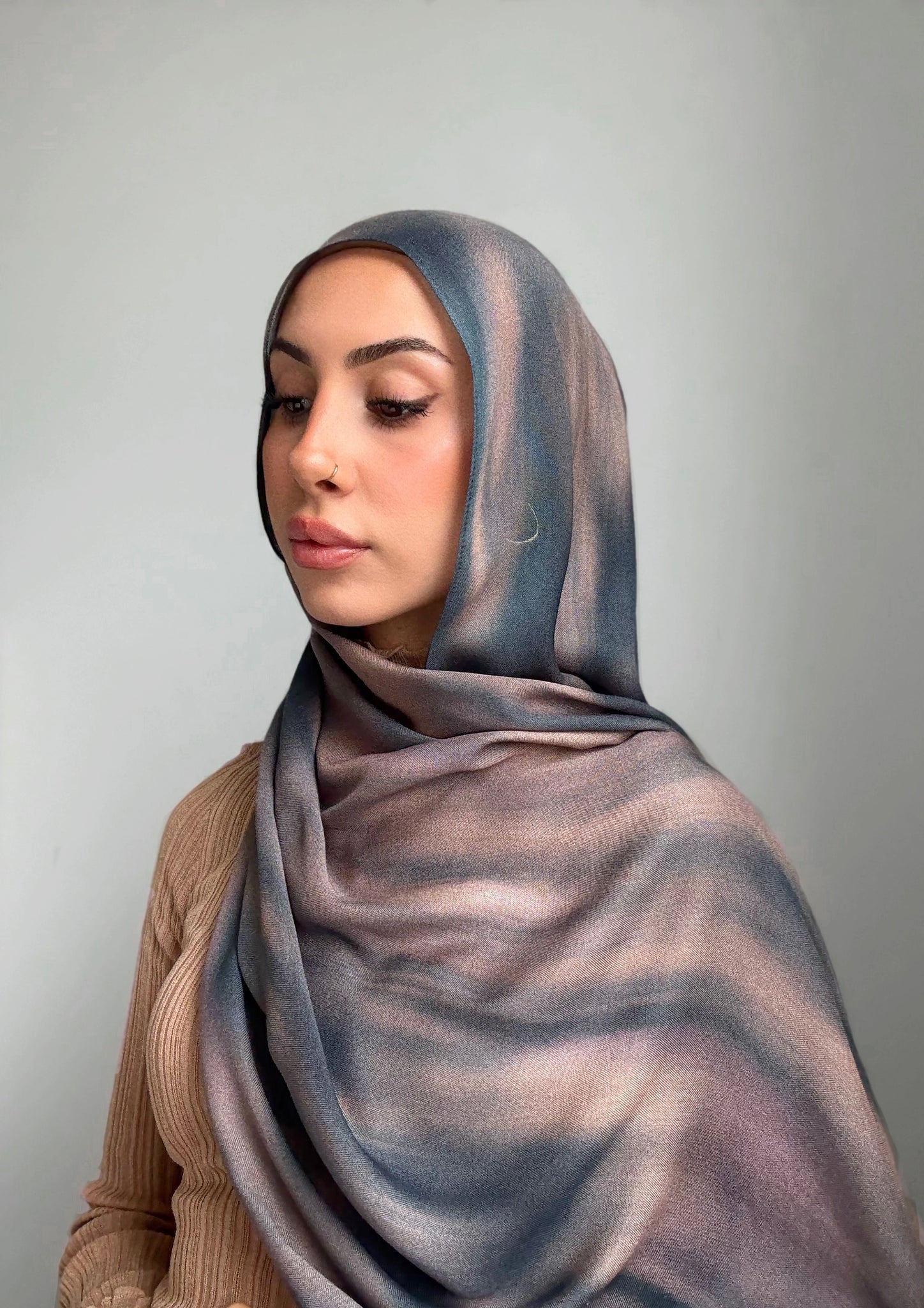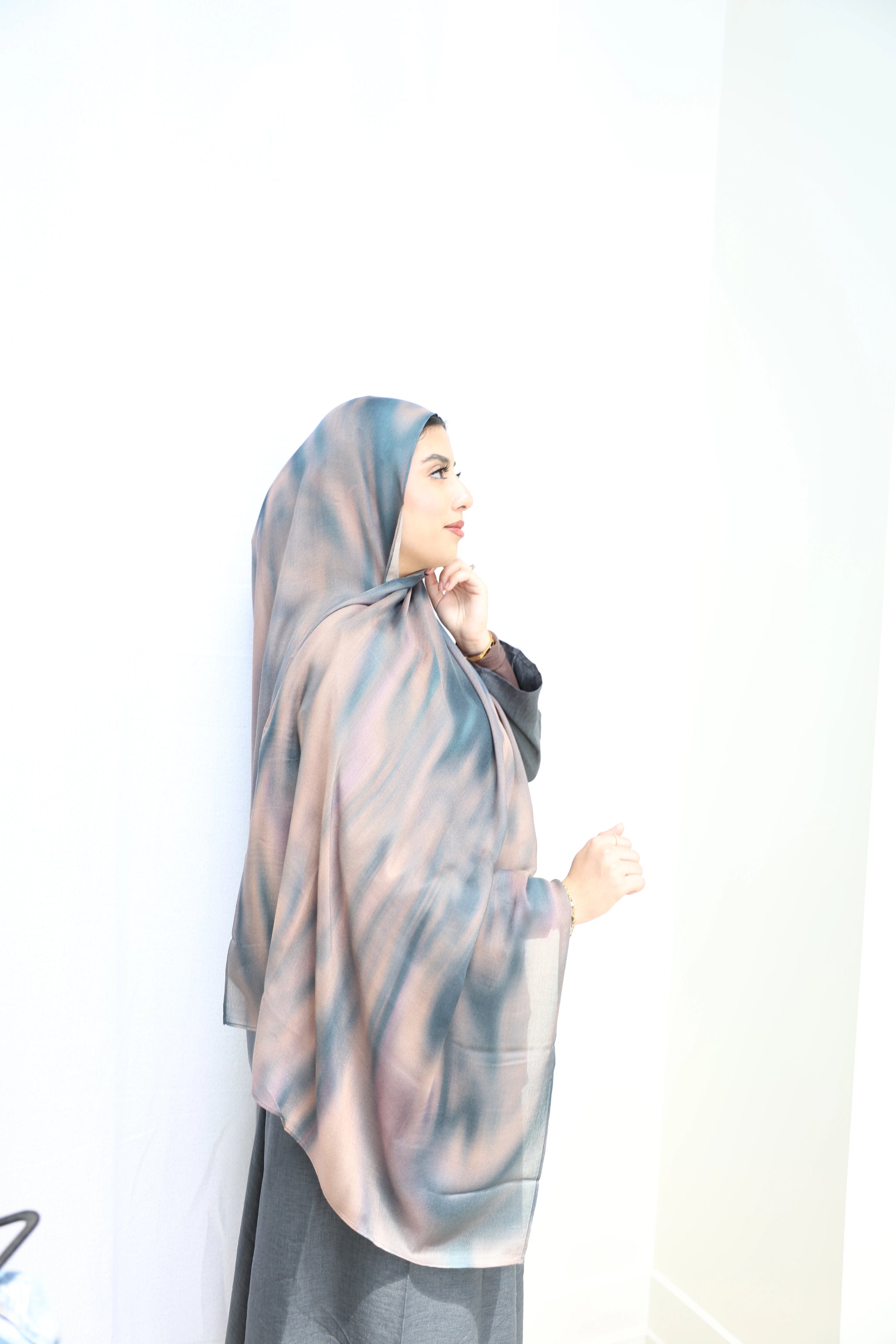 Teal Groove: A flowing harmony of muted teal, soft blush, and earthy taupe, blending like brushstrokes on silk.