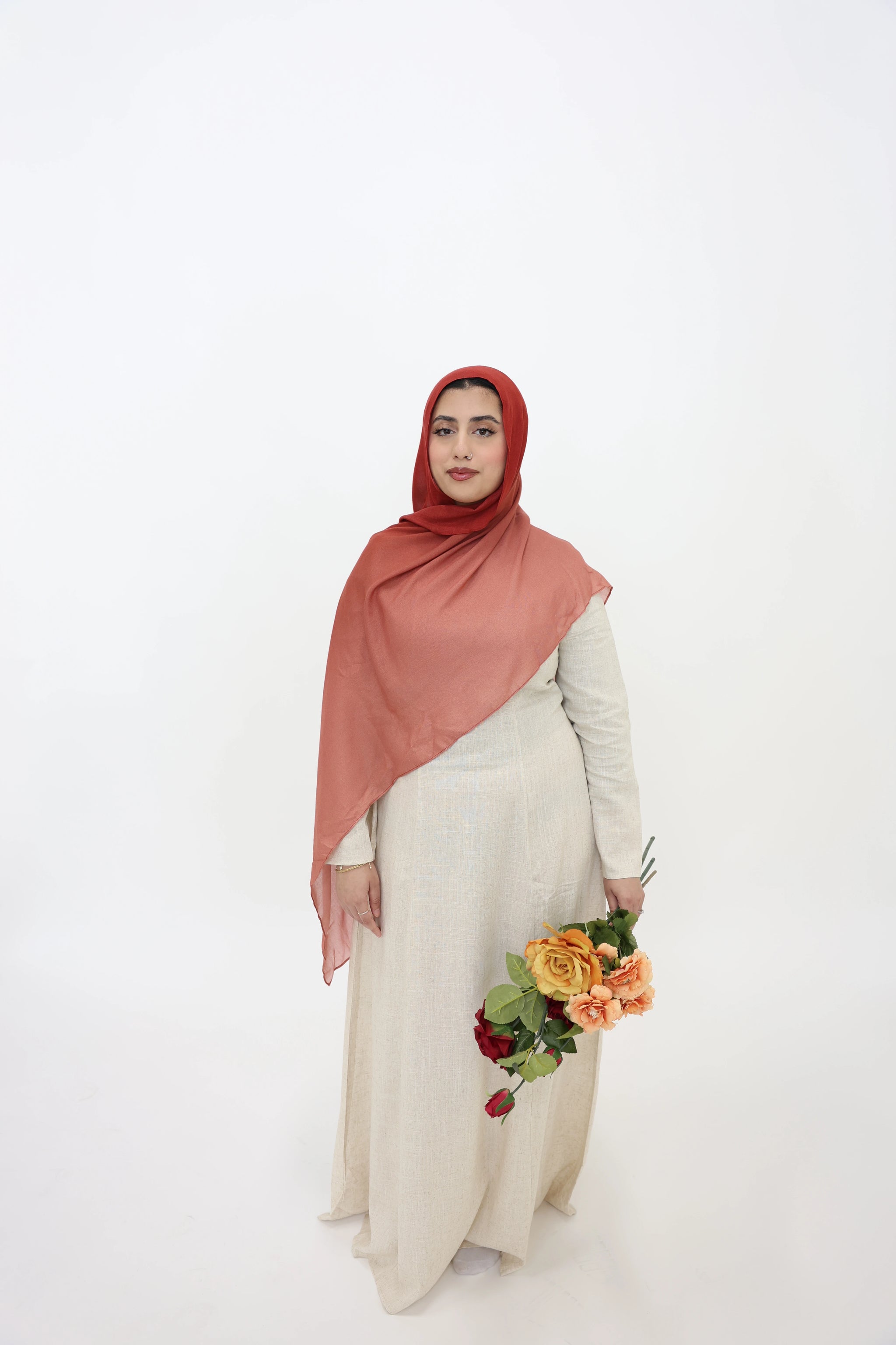 Burnt Coral Hue: A rich amber-red shade that brings warmth and vibrance to your look.